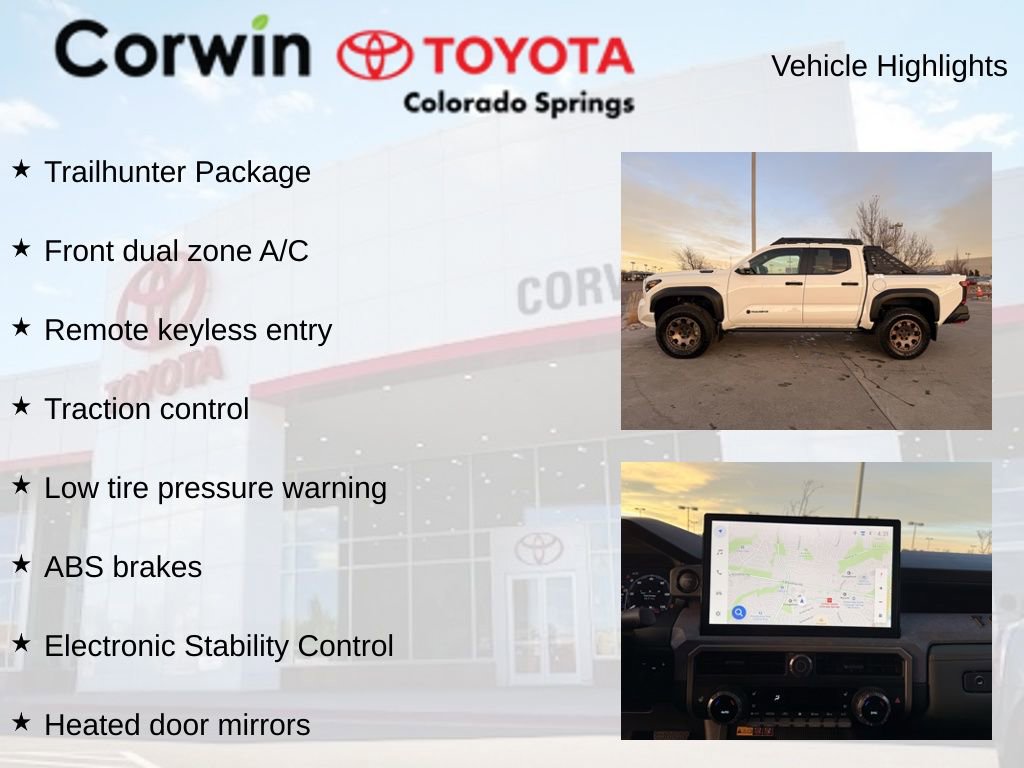 Priced below KBB Fair Purchase Price! 2025 Ice Cap Toyota Tacoma Hybrid Trailhunter CARFAX One-Owner. Clean CARFAX.