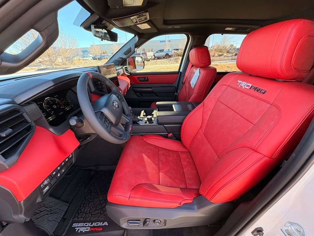 This Toyota Sequoia is well equipped and includes the following features and benefits, TRD PRO, Panoramic Roof, Power tilt/slide moonroof with sliding sunshade, Heated steering wheel, Qi-compatible wireless smartphone charging with charge indicator light, 14 JBL® speakers including subwoofer and amplifier, ABS brakes, Active Cruise Control, Alloy wheels, Compass, Electronic Stability Control, Front dual zone A/C, Heated door mirrors, Heated front seats, Illuminated entry, Low tire pressure warning, Navigation System, Power Liftgate, Power moonroof, Remote keyless entry, Traction control.