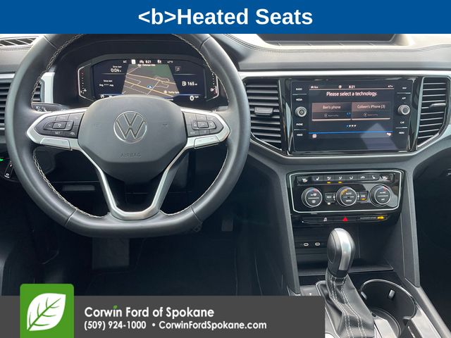This Volkswagen Atlas is well equipped and includes these key features and benefits, Collision Warning System, Heated Seats, Touchscreen Controls, Backup Camera, Keyless Access with Push Button Start, Apple CarPlay, Android Auto, Bluetooth Hands-Free, Panoramic Moonroof, Atlas 2.0T SEL, 4D Sport Utility, 2.0L TSI, 8-Speed Automatic with Tiptronic, AWD, Platinum Gray Metallic, Titan Black w/Perforated V-Tex Leatherette Seating Surfaces, 6 Speakers, Automatic temperature control, Front dual zone A/C, Radio: MIB3 Discover Media w/8" Touchscreen Nav, Rear air conditioning. Priced below KBB Fair Purchase Price!