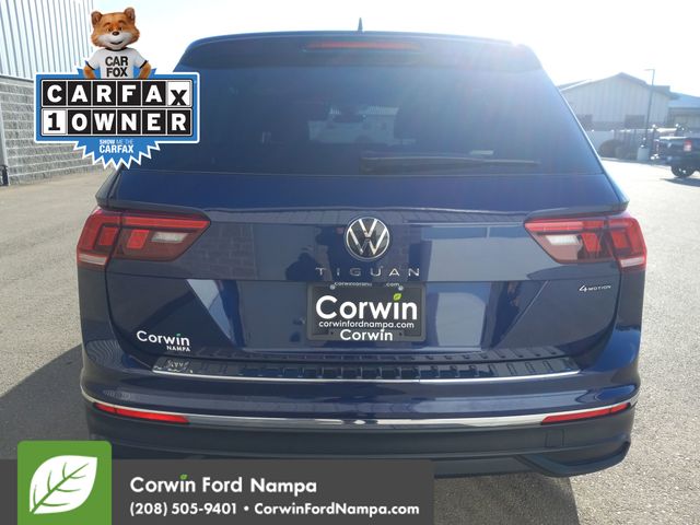 Welcome to our exclusive Accident Free, One Owner 2024 Volkswagen Tiguan Wolfsburg Edition 4MOTION, which raises the bar for versatile style in Atlantic Blue Metallic! Powered by a TurboCharged 2.0 Liter 4 Cylinder offering 184hp to an 8 Speed Automatic transmission for boosted performance. This All Wheel Drive SUV also features a sporty suspension for agile handling, and it returns nearly 29mpg on the highway with bold special edition upgrades. Our Tiguan exterior demands attention with LED lighting, a remote power liftgate, 18-inch alloy wheels, heated power mirrors, silver roof rails, and heated windshield washer nozzles.