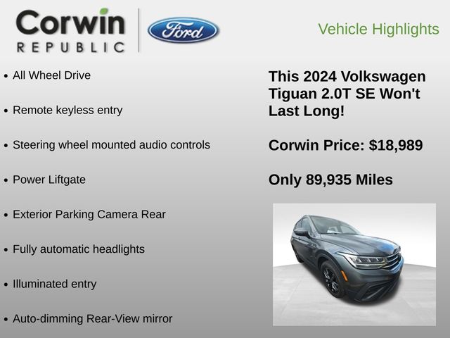 2024 Volkswagen Tiguan 2.0T SE AWD 8-Speed Automatic with Tiptronic 2.0L TSI DOHC Platinum Gray Metallic 22/29 City/Highway MPG