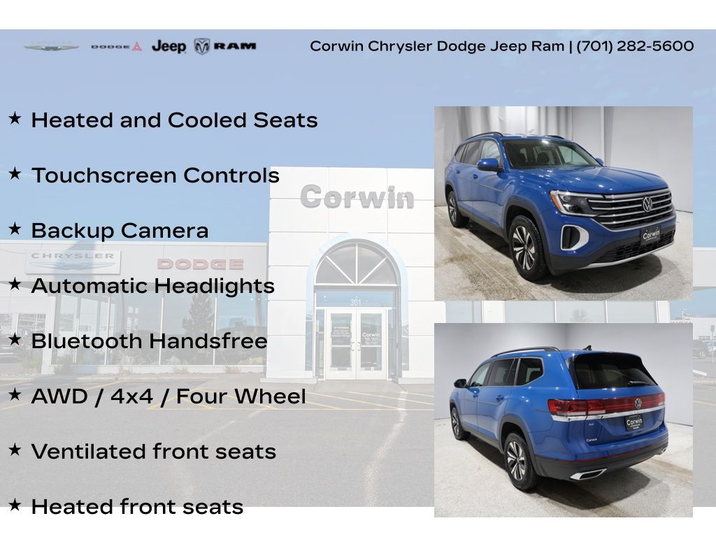 EMBRACE THE SHORTEST MONTH OF THE YEAR WITH CORWIN CHRYSLER DODGE JEEP RAM OF FARGO! WE HAVE SAVINGS ON ALL OF OUR PRE-OWNED VEHICLES AVAILABLE!! WE HAVE ONE OF THE LARGEST SELECTIONS OF INVENTORIES IN OUR AREA AT ONE SINGLE LOCATION!! Priced below KBB Fair Purchase Price! Blue 2025 Volkswagen Atlas 2.0T SE 4D Sport Utility AWD 2.0L TSI Clean CARFAX.
